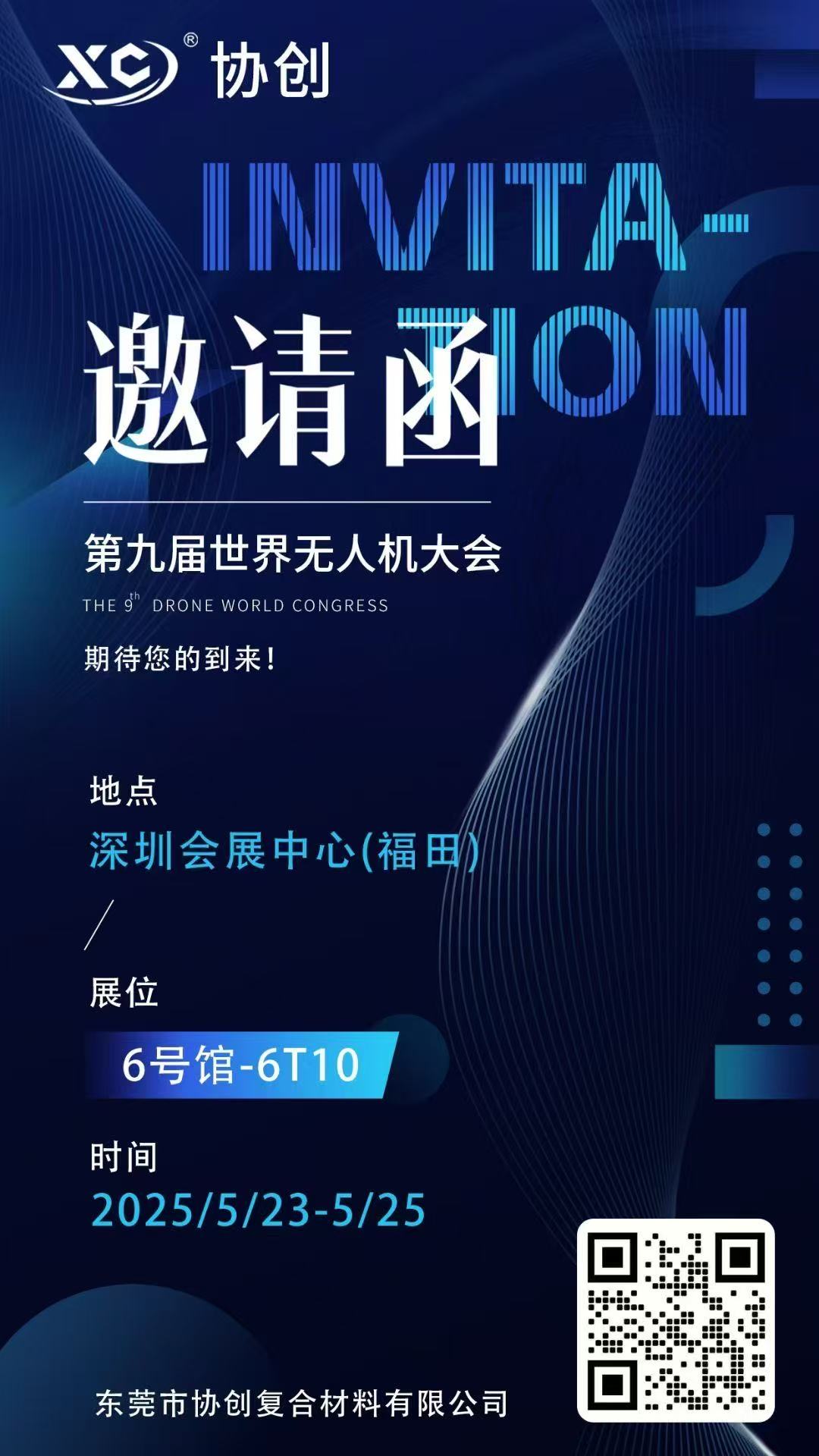 全球無(wú)人機(jī)行業(yè)年度盛會(huì)——第九屆世界無(wú)人機(jī)大會(huì)將于2025年5月23日-25日在深圳會(huì)展中心(福田)盛大開(kāi)幕!作為復(fù)合材料領(lǐng)域創(chuàng)新先鋒,東莞市協(xié)創(chuàng)復(fù)合材料有限公司誠(chéng)邀您蒞臨6號(hào)館-6T10展位,共探輕量化材料與無(wú)人機(jī)融合的無(wú)限可能!